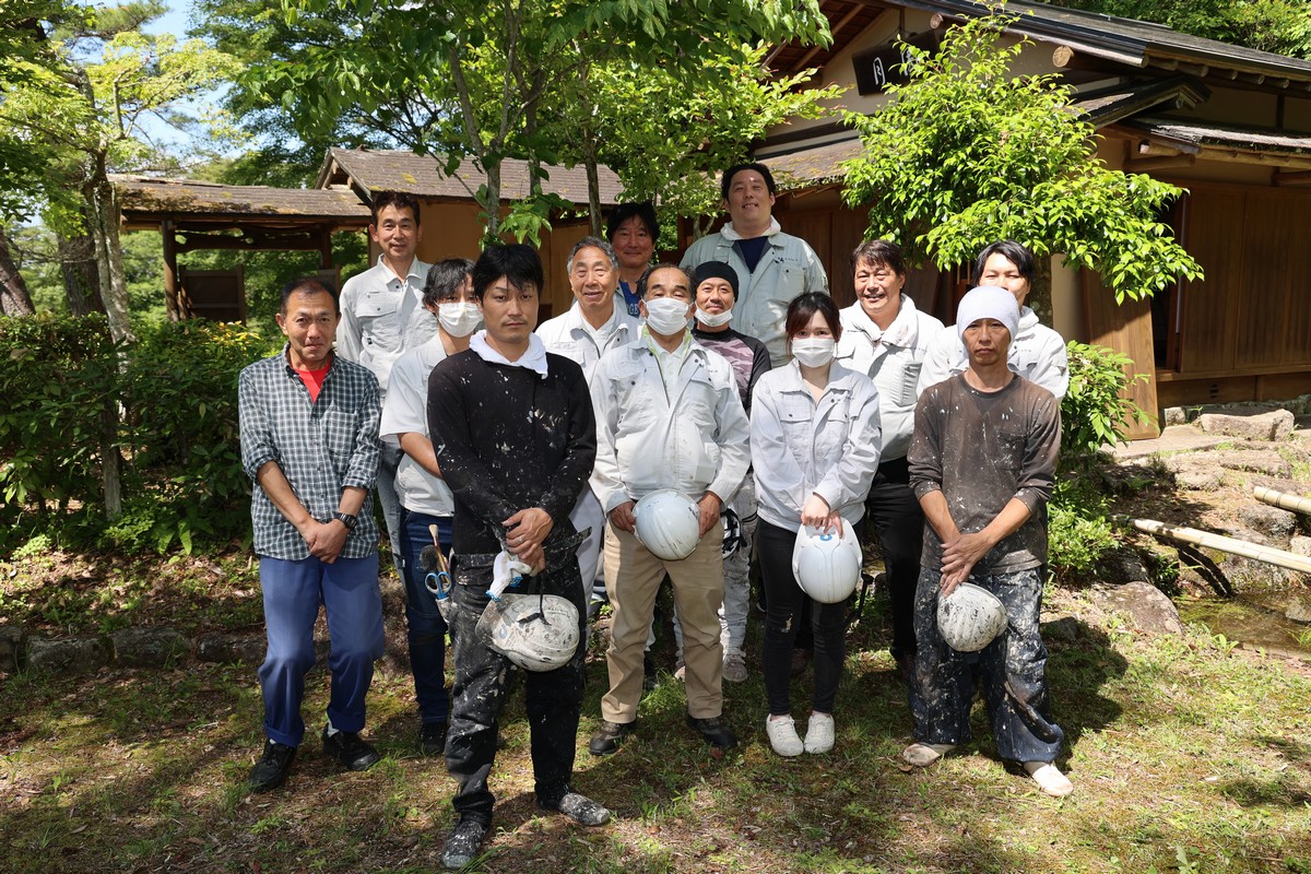 2024年7月5日エース・リフォーム中津川支店は昨年に引き続き、恵那市岩村城址にある岩村藩主邸復元茶室「圓月」の塗装ボランティアを6月3日に行いました。